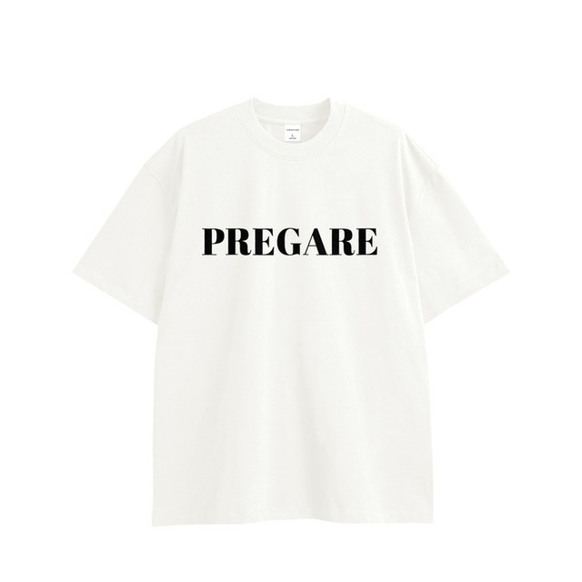 PREGARE オーバーサイズ コットンTシャツ メンズ Tシャツ 90z